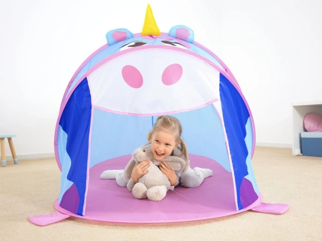 Otkrijte čaroliju maštovite igre s šatorom za igru u obliku jednoroga koji će djecu oduševiti veselom paletom boja i prijateljskim dizajnom. Šator se sam rasklopi u trenu, pa je spreman za zabavu u domu, na terasi, u vrtu ili pokraj vode. Izdržljiva poliesterska tkanina i mrežaste bočne stranice osiguravaju dobru cirkulaciju zraka i preglednost za roditelje.