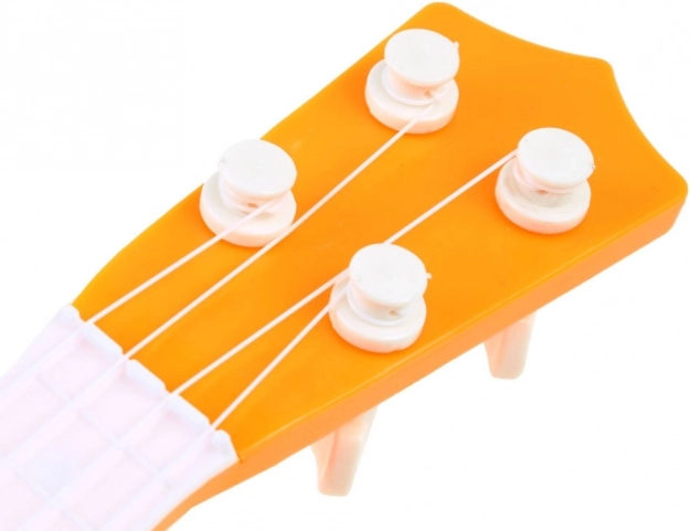 Podesivi vrat i 4 žice omogućuju djeci isprobavanje prvih akorda i jednostavnih melodija.