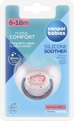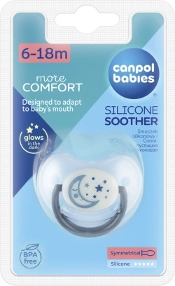 Duda NIGHT DREAMS izrađena je od visokokvalitetnog silikona bez mirisa. Opremljena je ortodontski oblikovanim usnim dijelom. Zahvaljujući otvorima na štitiću duda ne iritira osjetljiva dječja usta. Prigušeno svjetlo u tamnom disku olakšava pronalazak noću. Bez BPA. Dostupna u nekoliko boja. Namijenjena djeci u dobi od 6 do 18 mjeseci. Duda je dostupna u 3 veličine: 22/500 0–6 mjeseci, 22/501 6–18 mjeseci, 22/502 od 18 mjeseci. Pakiranje sadrži 1 komad. Ima svjetleću sredinu u mraku koja olakšava pronalazak dude. Duda je dobro prozračena zahvaljujući posebnim ventilacijskim otvorima na štitiću. Duda je izrađena od najkvalitetnijeg silikona bez okusa i mirisa. Udobna ručkica – olakšava posluživanje dude i omogućuje jednostavno pričvršćivanje na vrpcu ili lančić za dudu. Idealna za djecu od 6 do 18 mjeseci. Izrađena od sigurnog materijala bez bisfenola A. Ne koristiti u perilici posuđa ili mikrovalnoj pećnici. Može se dezinficirati i prokuhavati. Upute za uporabu: Prije prve uporabe dudu iz higijenskih razloga sterilizirajte u kipućoj vodi oko 5 minuta. Nakon hlađenja istisnite preostalu vodu iz dude. Prije svake uporabe dudu temeljito operite u toploj vodi. Ne koristite antibakterijska niti kemijska sredstva za čišćenje. Pretjerana uporaba sredstava za čišćenje može oštetiti plastične dijelove. Nikada ne umačite dudu u slatke tvari ili lijekove – izlažete dijete riziku od oštećenja zubne cakline. Dudu koristite najviše 1–2 mjeseca, zatim je iz higijenskih i sigurnosnih razloga zamijenite novom. Ako djetetu duda uđe u usta, NE PANIČARITE – duda je konstruirana tako da je dijete ne može progutati i u takvim slučajevima možete je sigurno izvaditi iz usta. Vadite dudu što je moguće pažljivije. Čuvajte dudu u čistoj, suhoj i zatvorenoj kutijici. Preporučujemo da se dude ne koriste kod djece starije od 3 godine. Važno! Za sigurnost i zdravlje vašeg djeteta! Prije svakog davanja djetetu provjerite ispravnost dude. Provjerite kvalitetu cucli temeljitim istezanjem u svim smjerovima. Pri prvim znakovima oštećenja dudu odmah bacite i više ne koristite. Koristite samo one klipse i lančiće za dudu koji udovoljavaju zahtjevima norme EN 12586. Nikada ne pričvršćujte dudu na razne vrpce, vezice ili trake odjeće. Dijete se može ugušiti. Ne ostavljajte dudu na izravnom sunčevom svjetlu, u blizini izvora topline ili u dezinfekcijskim sredstvima dulje nego što je preporučeno – možete uzrokovati slabljenje cucli. Uklonjeni poklopac držite izvan dohvata djeteta – spriječit ćete moguće gušenje. Silikonska duda udovoljava zahtjevima: Direktiva Europskog parlamenta i Vijeća 2001/95/EC o općoj sigurnosti proizvoda; EN 1400 – 1 Proizvodi za njegu djece – Dude za dojenčad i malu djecu – Dio 1: Opći sigurnosni zahtjevi i informacije o proizvodu; EN 1400 – 2 Proizvodi za njegu djece – Dude za dojenčad i malu djecu – Dio 2: Mehanički zahtjevi i ispitivanja; EN 1400 – 3 Proizvodi za njegu djece – Dude za dojenčad i malu djecu – Dio 3: Kemijski zahtjevi i ispitivanja.