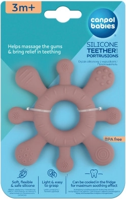 Raznolike teksture i ispupčenja po cijelom obodu umiruju nadražene desni i pomažu pri nicanju prvih zubića.