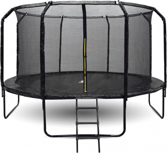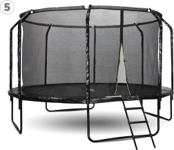 Skakaća površina od kvalitetnog polipropilena višestruko je prošivena (do 8 šavova) i dopunjena oksidiranim oprugama prekrivenim zaštitnim rubom. Stabilnost osiguravaju U-noge s vijcima montiranim s unutarnje strane konstrukcije, tako da je vanjska strana glatka i sigurna. U pakiranju ćete pronaći i ljestve, klinove s učvršćujućim trakama i vodootpornu navlaku za jednostavno korištenje i održavanje.