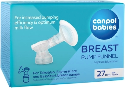 Zamjenski izmjenjivi lijevak 27 mm za izdajalice Canpol babies. Veličina lijevka – pravilno odabrana veličina lijevka ima velik značaj za udobnost i učinkovitost izdajanja majčinog mlijeka. Povećava učinkovitost izdajanja mlijeka i pomaže postići optimalan protok mlijeka. Elastičan i ergonomski obrub lijevka – prilagođava se različitim oblicima grudi. Veličina lijevka – pravilno odabrana veličina lijevka ima velik značaj za udobnost i učinkovitost izdajanja majčinog mlijeka. Set sadrži: tijelo izdajalice, silikonski masažni umetak, silikonski povratni ventil 1 kom. Detaljne upute za sastavljanje i čišćenje nalaze se u priručniku priloženom uz izdajalicu. Elastičan i ergonomski obrub lijevka – prilagođava se različitim oblicima grudi. Veličina lijevka – pravilno odabrana veličina lijevka uvelike utječe na udobnost i učinkovitost izdajanja majčinog mlijeka. Povećava učinkovitost izdajanja mlijeka i pomaže postići optimalan protok mlijeka. Izrađeno od sigurnog materijala bez bisfenola A. Upotreba: Rastavite izdajalicu. Prije prve i nakon svake upotrebe operite sve dijelove koji dolaze u izravan kontakt s mlijekom – poklopac membrane, membranu, tijelo izdajalice s lijevkom, silikonski masažni umetak, poklopac lijevka, silikonski povratni ventil, adapter za bočicu i bočicu – u toploj vodi s blagim deterdžentom te ih uronite na 5 minuta u kipuću vodu kako bi se osigurala higijena. Prije upotrebe sve dijelove temeljito osušite. Napomena! Ne ostavljajte dijelove na dnu lonca. Tijekom sterilizacije promiješajte vodu kako biste spriječili oštećenje dijelova. Silikonske komponente koje su u kontaktu s mlijekom, tj. membrana, silikonski masažni umetak i silikonski povratni ventil, mogu se sterilizirati u električnom sterilizatoru. Upozorenje! Izdajalicu, silikonske cjevčice s konektorima, mrežni adapter i USB kabel ne smije se prati niti sterilizirati u vodi. Za čišćenje prebrišite krpom. Set rezervnih dijelova udovoljava zahtjevima: Direktiva Europskog parlamenta i Vijeća 2001/95/EC o općoj sigurnosti proizvoda.