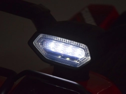 Sportski mini četverocikl za najmlađu djecu odličan je izbor za prve vožnje. Zahvaljujući kompaktnim dimenzijama lako stane u stan, a jednako dobro savladava glatke nogostupe ili dvorište. Pokretanje se vrši pritiskom crvenog gumba na rukohvatu, upravljačka ploča nudi zvučne efekte i trubu za još veću zabavu.
