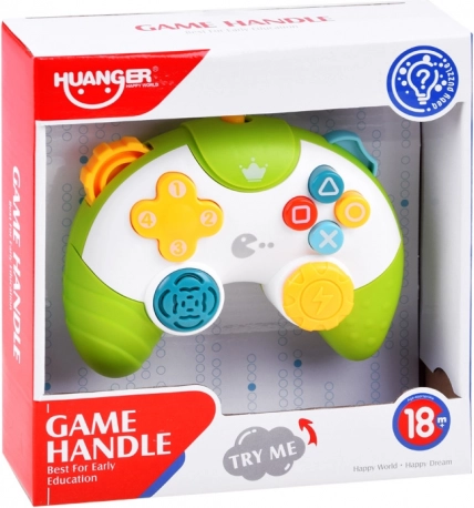Šareni dječji upravljač u stilu igraće konzole donosi svjetla, melodije i zvučne efekte koji razvijaju finu motoriku, sluh i maštu. Zahvaljujući ergonomskom obliku za male ručice i realističnom rasporedu tipki djeca uživaju u sigurnoj imitativnoj igri bez posuđivanja pravog upravljača.