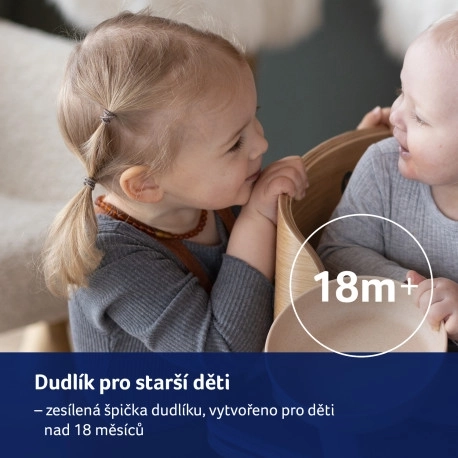 - Simetričan oblik inspiriran majčinom bradavicom omogućuje umetanje dude na bilo koji način.
