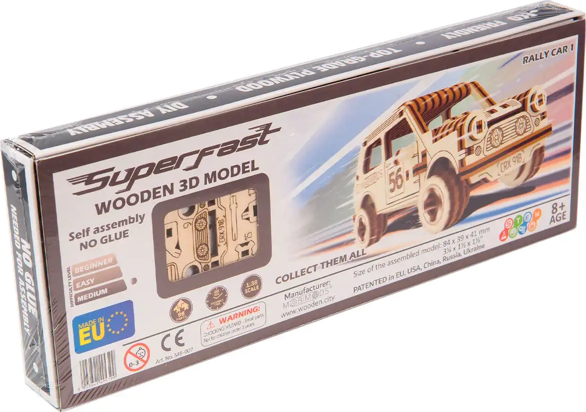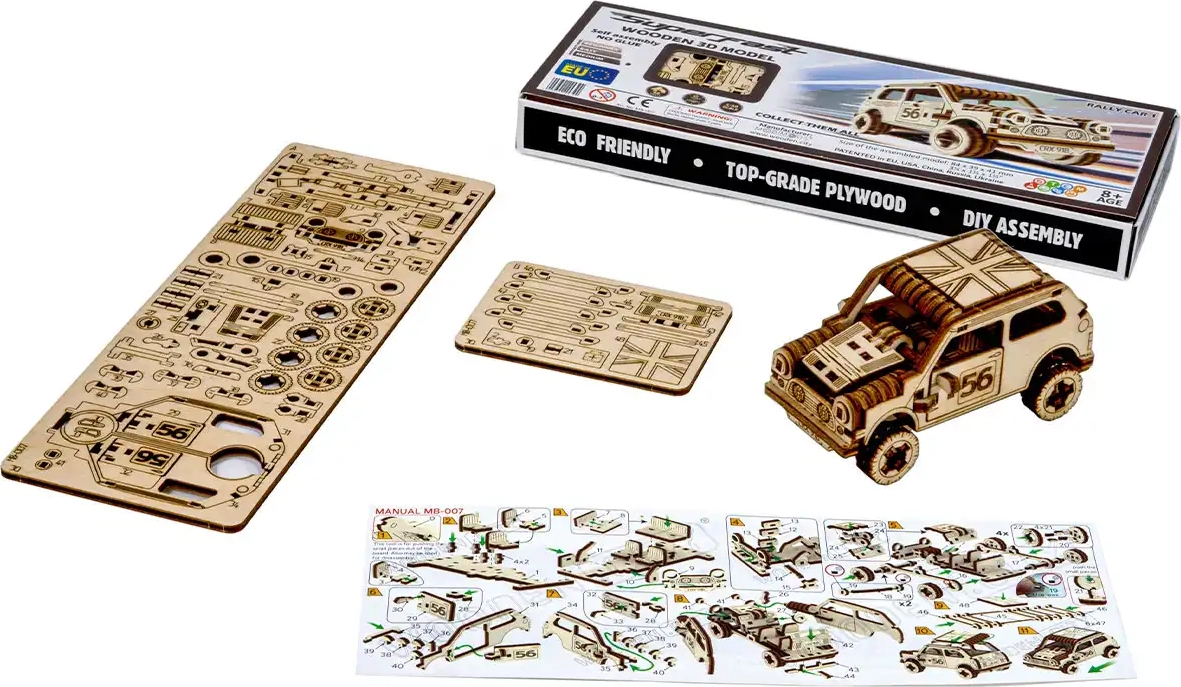 Model Rally Car 1 lako se sastavlja, stoga je idealan i za početnike kao odličan početak novog hobija, ali i za napredne u sastavljanju drvenih modela.