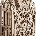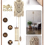 Drvene 3D puzzle WOODEN CITY Kraljevski sat vrhunsko su remek-djelo s naprednim detaljima i elegantnim linijama. Idealan poklon za ljubitelje ljepote i iznenađenja. Model je inspiriran rokoko stilom i uključuje detaljne izrezbarene isprepletene uzorke. Kraljevski sat dizajniran je da radi kao pravi mjerač vremena s podesivim periodom klatna, koji ovisi o količini umetnutih kovanica.