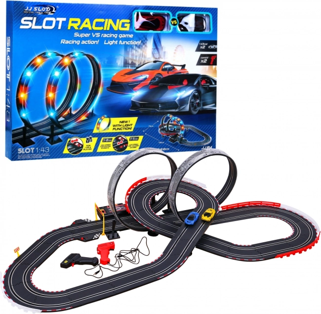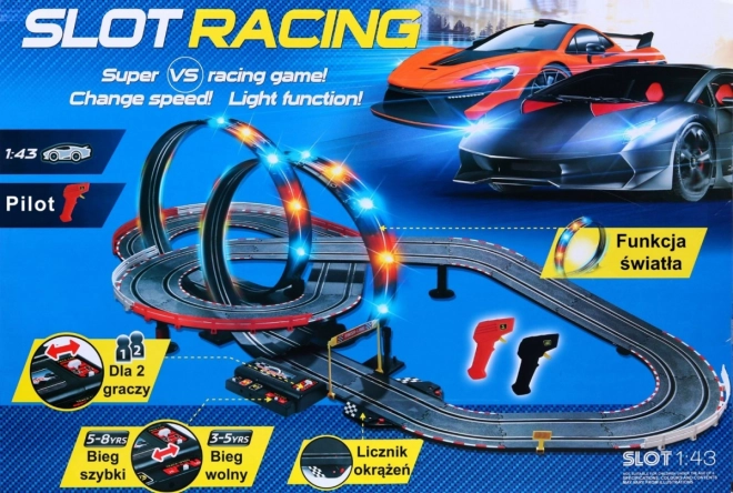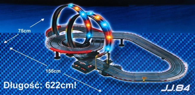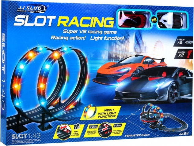 Uronite svoju djecu u svijet brzine i uzbuđenja s ovom jedinstvenom trkaćom stazom. Namijenjena je djeci od 3 do 8 godina i nudi široku paletu trkaćih scenarija zahvaljujući svojoj modularnoj konstrukciji koja omogućuje stvaranje oštrih zavoja, spirala i ravnih dionica. Osvijetljene petlje daju cijeloj igri jedinstven efekt i omogućuju djeci da dožive pravi osjećaj utrkivanja.