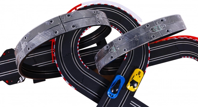 Crna staza s bijelim i crvenim detaljima nudi petlje i zavoje za dinamičnu trkaću igru. Dizajnirana je za trajnost i zabavu.