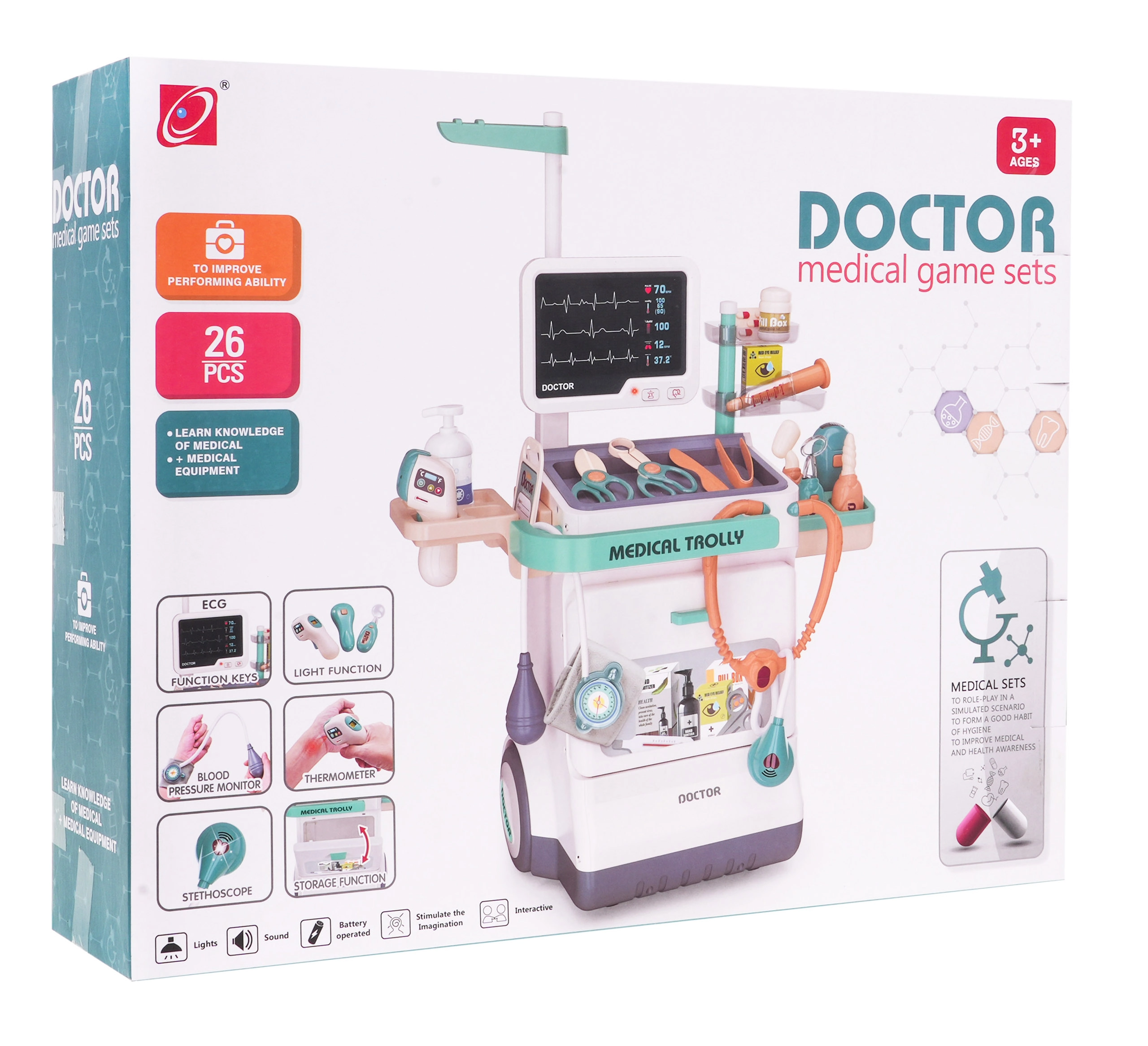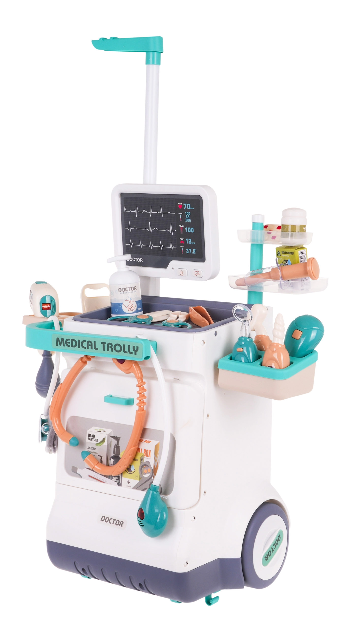 Ova interaktivna doktorska kolica savršen su set za igru koji vašoj djeci omogućuje da postanu liječnici. Sadrže set od 26 medicinskih dodataka, uključujući stetoskop, toplomjer i EKG uređaj, koji pružaju realističan i zabavan doživljaj igre.