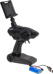 Auto u mjerilu 1:14 napaja se Li-Pol 3.7V baterijom, što osigurava dugu radnu autonomiju. Ergonomski oblikovan daljinski upravljač na frekvenciji 2.4GHz omogućuje precizno upravljanje, a sučelje za montažu telefona pruža udobnost pri korištenju kamere.