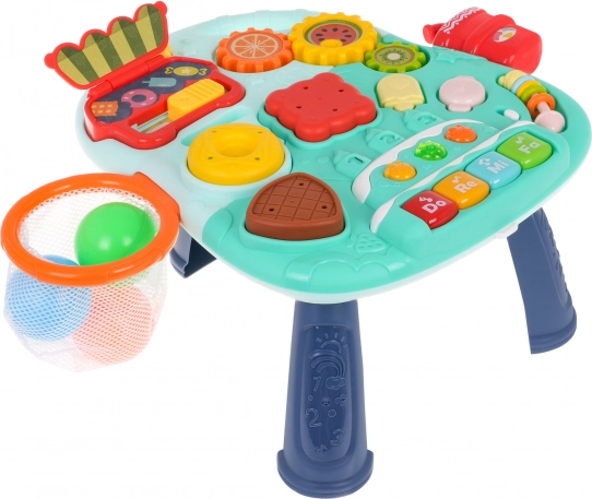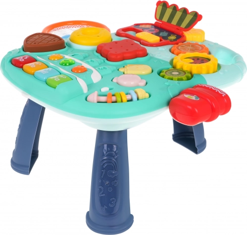 Sadrži glazbene tipke i druge interaktivne elemente za poticanje osjetilnog razvoja.