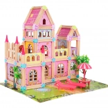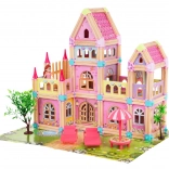 Dječja drvena kućica za princeze nudi mogućnost izgradnje prekrasne kućice s kreativnim elementima za djecu. Set sadrži 183 komada građevnih elemenata, uključujući dvije figurice princeza, zahvaljujući kojima djeca mogu razvijati svoje pripovjedačke vještine. Kućica ima nekoliko katova i balkone, što omogućuje raznolike scenarije igre.