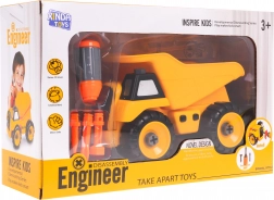 Ovaj plastični građevinski kiper s odvijačem idealan je za djecu koja vole stvarati i tehniku. Zahvaljujući jednostavnom sustavu vijaka, dijete vježba koordinaciju oko–ruka, strpljenje i razumije osnovne principe montaže i demontaže. Podizna karoserija dodaje igri realističnu dimenziju – ukrcaj, prevezi i istovari.