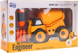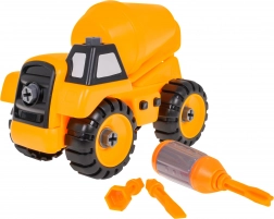 Zabavna građevinska miješalica za sastavljanje za male konstruktore od 3 godine razvija finu motoriku, logičko razmišljanje i kreativnost. Zahvaljujući čvrstoj plastici vozilo se može višekratno rastavljati i sastavljati, bubanj je podizan, nagibni i rotirajući. Dio pakiranja je odvijač s 3 izmjenjiva bita.