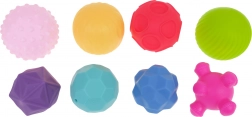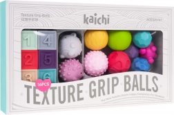Svaka loptica i kocka ima jedinstvenu površinu i uzorak. Djeca vježbaju dodir, hvat i koordinaciju dok otkrivaju boje i oblike.