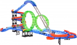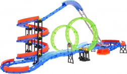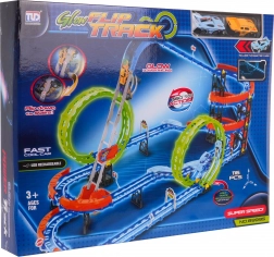 Ovaj šareni trkaći set donosi djeci dinamičnu zabavu s strmim usponima, dvostrukom 360° petljom i sigurnosnim ogradama u zavojima. Zahvaljujući fluorescirajućim elementima staza svijetli u mraku, a vožnja je još zabavnija. Dva lagana trkaća autića s LED osvjetljenjem pokreće ugrađeni akumulator 3,7 V te se pune preko USB-a.