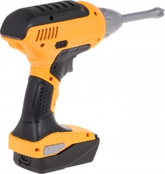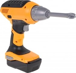 Ova dječja bušilica idealna je igračka za djecu od 3 godine. Izgleda i radi kao pravi alat s izmjenjivim bitovima za umetanje i vađenje vijaka. Bušilica dodatno pruža realistične zvukove, poput zvuka bušenja, te svjetlosne efekte, što pojačava doživljaj igre. Mladi majstori mogu se veseliti puno zabave s izvadivom baterijom, kao da je riječ o pravom alatu.