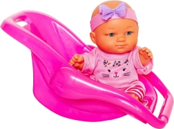 Ružičasta plastična nosiljka/kolijevka s integriranom ručkom za sigurno nošenje lutke kod kuće i na otvorenom. Idealno za realističnu igru brige.