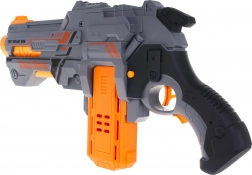 Poluautomatski pištolj BLAZE STORM u elegantnoj sivoj boji donosi akcijsku zabavu za djecu od 8 godina. Nudi jednostavno upravljanje, donji spremnik i pucanje mekim pjenastim mecima s gumenim vrhom za sigurniju igru. Oružje se napaja s 4× AA baterije (nisu uključene) i idealno je za kućne i vanjske okršaje. Jednostavna upotreba, udoban hvat, sigurni pjenasti meci i pouzdan spremnik za maksimalnu zabavu.