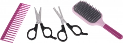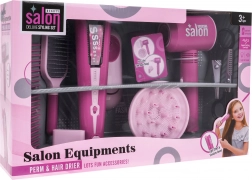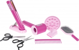 - fen, .- izmjenjivi nastavak za fen s difuzorom, .- izmjenjivi nastavak za fen s koncentratorom, usmjerivač zraka, .- pegla za kosu, .- škare, .- efilažne škare, .- češalj, .- četka za kosu, .- stalak za fen. | .