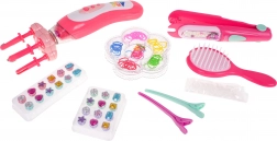 - stroj za pletenje kose cca 25 cm x 5 cm x 5,5 cm, - uređaj za nanošenje nakita na kosu cca 18 cm x 3,5 cm x 3,5 cm, - ukosnica dimenzija cca 9,5 cm x 1,5 cm x 2 cm, - “dijamanti” cca 1 cm x 1 cm, - četka za kosu cca 14,5 cm x 6,5 cm x 2,5 cm, - kutijica za gumice za kosu dimenzija cca 11 cm x 11 cm x 2 cm, - kutija cca 46 cm x 31,7 cm x 6,5 cm. |