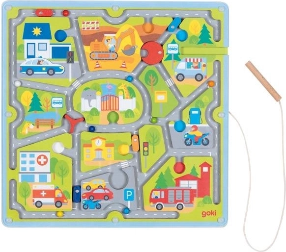 U šarenom GOKI gradu uvijek ima nešto za otkriti. Djeca pomoću magnetske olovke pomiču kuglice/autiće po stazama, uče prepoznati jednosmjerne ulice, prednost na raskrižjima i zone zabrane parkiranja. Ova interaktivna igra prirodno razvija finu motoriku, koordinaciju oko–ruka i usredotočenost.