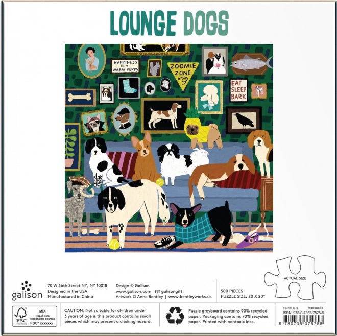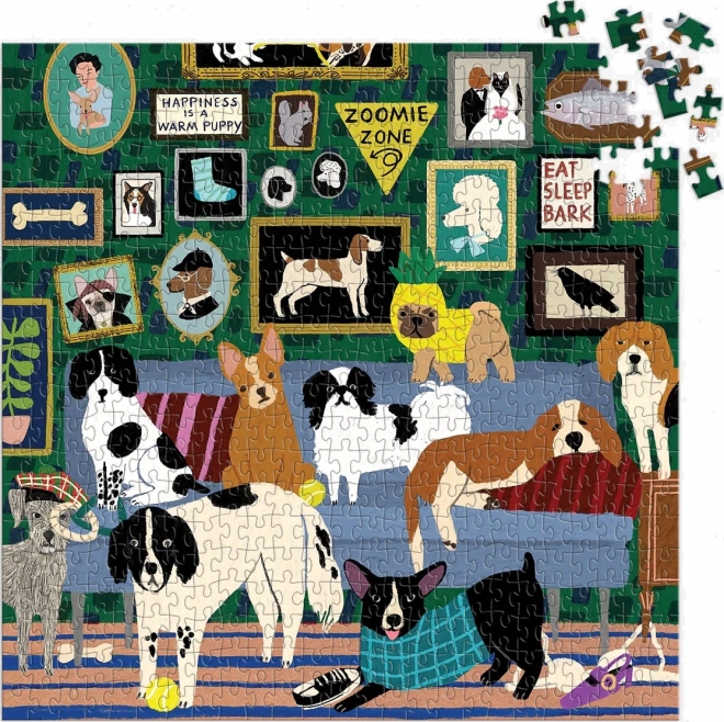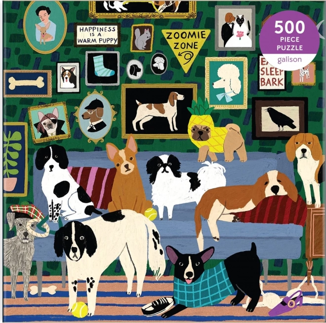 Uživajte u opuštanju s elegantnim puzzlama s motivom pasa u udobnom salonu. Ovaj kvadratni set nudi 500 dijelova, kvalitetan tisak i predložak motiva za lakše slaganje. Nakon slaganja nastaje slika dimenzija cca 51 × 51 cm – idealna za uokviravanje.