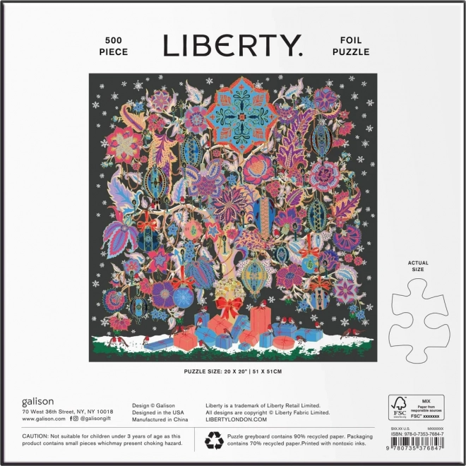 Uživajte u opuštanju uz slaganje elegantnih kvadratnih puzzli s motivom Liberty: Božićno stablo života. Posebna metalno sjajna površina pojedinih dijelova motiva daje efekt zlata i srebra, zahvaljujući kojem slika blista iz različitih kutova. U pakiranju se nalazi i predložak za ugodnije slaganje.