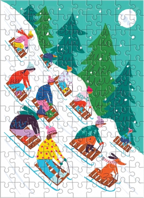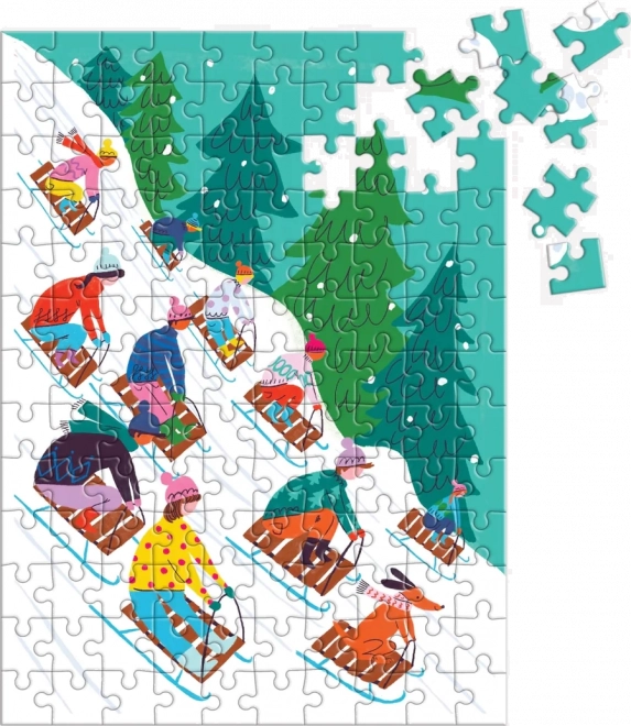 Svi dijelovi puzzla pažljivo su dizajnirani kako bi prikazali živopisnu zimsku scenografiju s djecom koja se sanjkaju na snježnim padinama. Odlično za djecu i odrasle!
