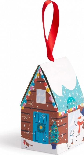 Puzzle je pakiran u stiliziranoj božićnoj kutiji u obliku kućice. Odlično kao dekoracija ili božićni poklon.