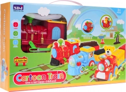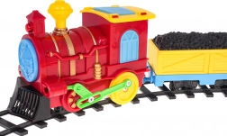 Interaktivna lokomotiva za djecu 3+ sa svjetlima, zvukovima i pokretnim elementima, 2 vagona i pribor