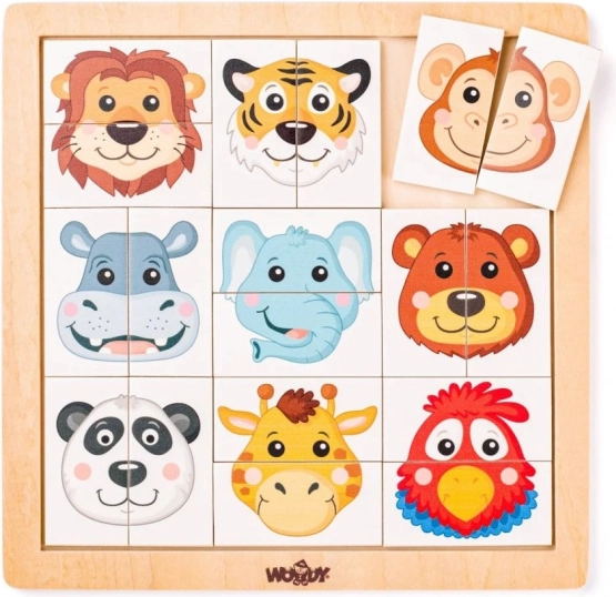Ova drvena slagalica sa safari motivima donosi djeci radost otkrivanja. Svaka je životinja podijeljena na nekoliko dijelova koje djeca slažu u ispravne kombinacije – ili ih mogu kreativno miješati. Robusno drvo i jarke boje pozivaju na ponavljanu igru te razvijaju finu motoriku i koncentraciju.