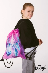 Zahvaljujući zatvaranju pomoću čvrstih vezica vrećica se sigurno zatvara, a ujedno se može nositi kao udoban ruksak na leđima. Minimalistički dizajn i popularan motiv oduševit će i djecu i odrasle.