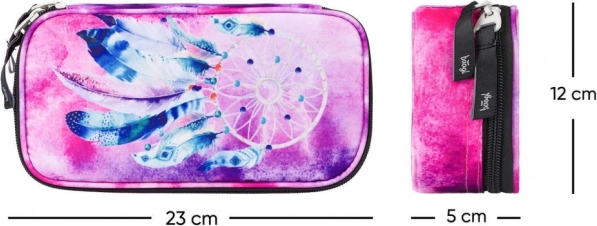 Omiljena školska pernica s atraktivnim motivom dreamcatchera spaja moderan dizajn i praktičnost. Zahvaljujući čvrstoj izradi odolijeva svakodnevnoj upotrebi te čuva vaše školske potrepštine sigurno i pregledno. Preklopna pregrada s elastičnim petljama drži olovke i kemijske na svom mjestu, a unutarnji džep na patentni zatvarač skrije sitnice.