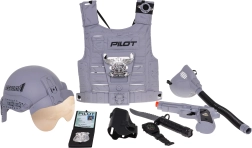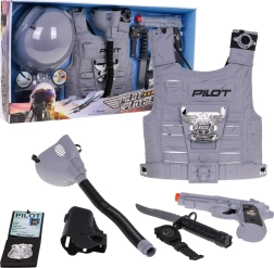 Ovaj set malog pilota je idealna igračka za djecu koja vole otkrivati nove svjetove i isprobavati ulogu pilota. Set sadrži kacigu sa zaštitnim naočalama, podstavljen prsluk s elastičnim pojasom, masku s mogućnošću pričvršćivanja i interaktivnu igračku pištolj koja ispušta zvukove pucnja. Osigurava beskrajne sate zabave i istovremeno razvija maštu.
