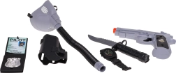 Set sadrži masku s disajnom cijevi, igračku pištolj, nož i druge realistične dodatke za avanturističke igre.