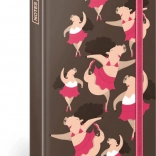 Prednja strana bilježnice ukrašena je ilustracijom plešućih praščića u ružičastim tutuima, što dodaje humoran i razigran element.