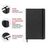 Bilježnica je opremljena elastičnom trakom za zatvaranje i oznakom za lako pronalaženje stranice.