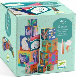 Stogljive kocke s ilustracijama divljih životinja pozivaju na istraživanje i razigrano učenje. Djeca vježbaju razvrstavanje po veličini, prepoznavanje boja i brojanje od 1 do 10, dok pričaju priče o životinjama. Čvrsta kartonska izrada lagana je za ručice i sigurna za najmlađe od 12 mjeseci.