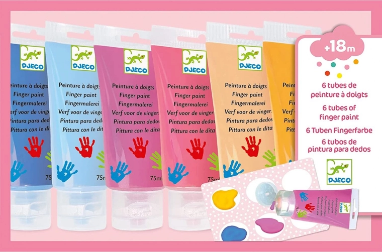 Set od 6 boja za prste u pastelnim nijansama za male umjetnike, idealno za prvo slikanje i stvaranje crteža. Boje se lako peru i ispiru, pa će pranje ruku i zaprljane odjeće biti vrlo jednostavno. Tube se lako otvaraju i zatvaraju. Set sadrži: 6 tuba s bojama za prste (svaka sadrži 75 ml) i plastičnu paletu.