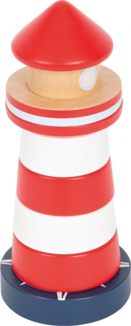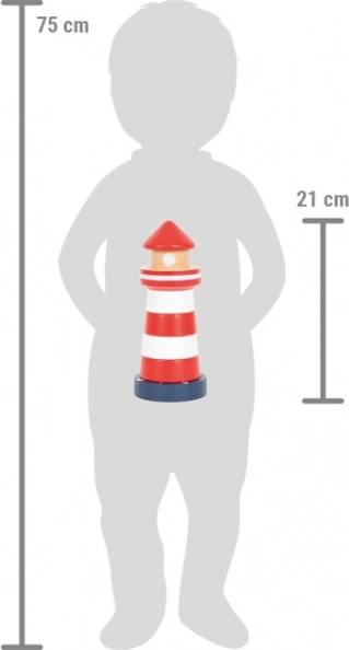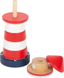 Ovaj drveni toranj za slaganje u obliku klasičnog crveno-bijelog svjetionika donosi djeci od 1 godine radost otkrivanja i slaganja. Sedam šarenih prstenova slaže se na stabilnu bazu sa fleksibilnim klinom, koji povećava sigurnost tijekom igre. Učenje poretka po veličini potiče logično razmišljanje i strpljenje.