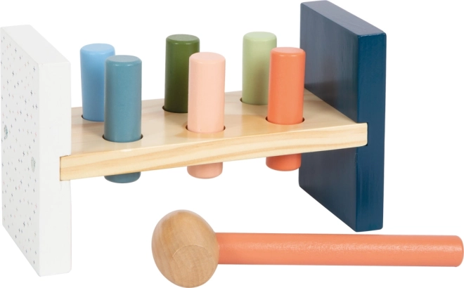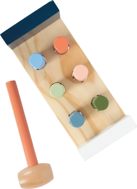 Igra razvija strpljenje, koncentraciju i jača sigurnost pri udarcima. Zahvaljujući robusnoj izvedbi i glatkim rubovima sigurna je za male dječje ruke, dok prirodan izgled i pastelne boje odlično pristaju svakom dječjem sobičku.
