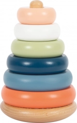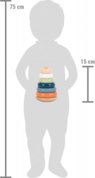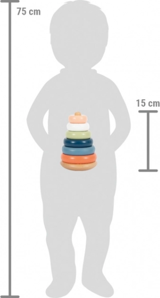 Ovaj elegantni toranj za slaganje u nježnim arktičkim bojama privlači djecu već od 12 mjeseci. Šest obojenih kolutova djeca nižu na središnji klin prema veličini, čime vježbaju logiku, strpljenje i preciznost pokreta. Glatka površina drva osigurava ugodan taktilni doživljaj, a kvalitetna izrada pruža dug vijek trajanja.