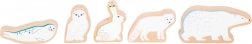 Figurice polarnog medvjeda, snježne sove, polarne lisice, tuljana i zeca potiču pripovijedanje i razvijaju maštu tijekom igre.