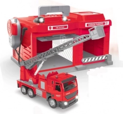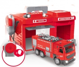 Ovaj vatrogasni igraći set – garaža donosi djeci puno autentične zabave. Pritiskom tipke na gornjoj strani vozila aktiviraju se bljeskajuća svjetla i realistični zvučni efekti, koji igri daju napetost. Bočna tipka pokreće govorene poruke, pa djeca mogu doživjeti još živopisnije avanture.