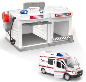 Igraći set sa svjetlosnim i zvučnim efektima. Lako prenosiv zahvaljujući ručki. Pritisni gumb na gornjoj strani vozila i vidjet ćeš svjetlosne te čuti zvučne efekte. Poziv – pritisni gumb na lijevoj strani i započet će razgovor. Zvučnik. Uživaj u puno zabave s ovim igraćim setom.