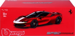 Model Ferrari SF90 Stradale Assetto Fiorano 2020 brenda Bburago vjerno dočarava karakter prvog plug-in hibrida FERRARIJA. Posebno izdanje Assetto Fiorano fokusirano je na maksimalne performanse i vozne osobine – a ti se elementi odražavaju i u preciznoj modelskoj izradi. Crveno lakiranje s kontrastnim detaljima naglašava sportski dizajn i aerodinamične linije.