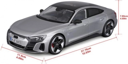 Zahvaljujući čvrstom die-cast tijelu ističe se izdržljivošću i postojanošću boja. Razrađen interijer, otvarajuća vrata, poklopac motora i prtljažnik (ovisno o verziji) naglašavaju autentičnost pravog vozila AUDI RS e-tron GT.