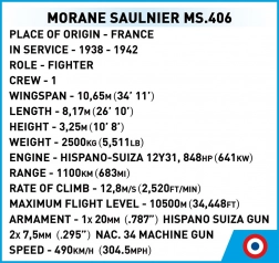 COBI Morane‑Saulnier MS.406 – set za slaganje povijesnog zrakoplova 1:32 (317 dijelova)